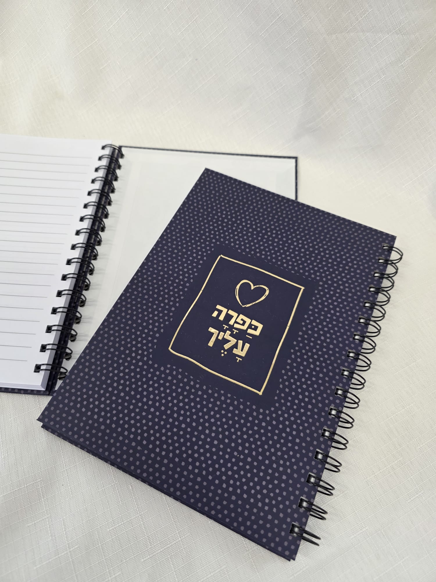 עם מחברת "כפרה עלייך" – מחברת ספירלה מעוצבת,