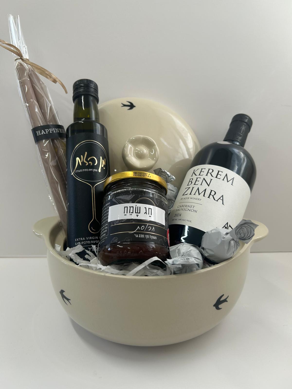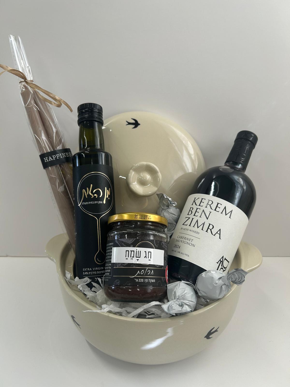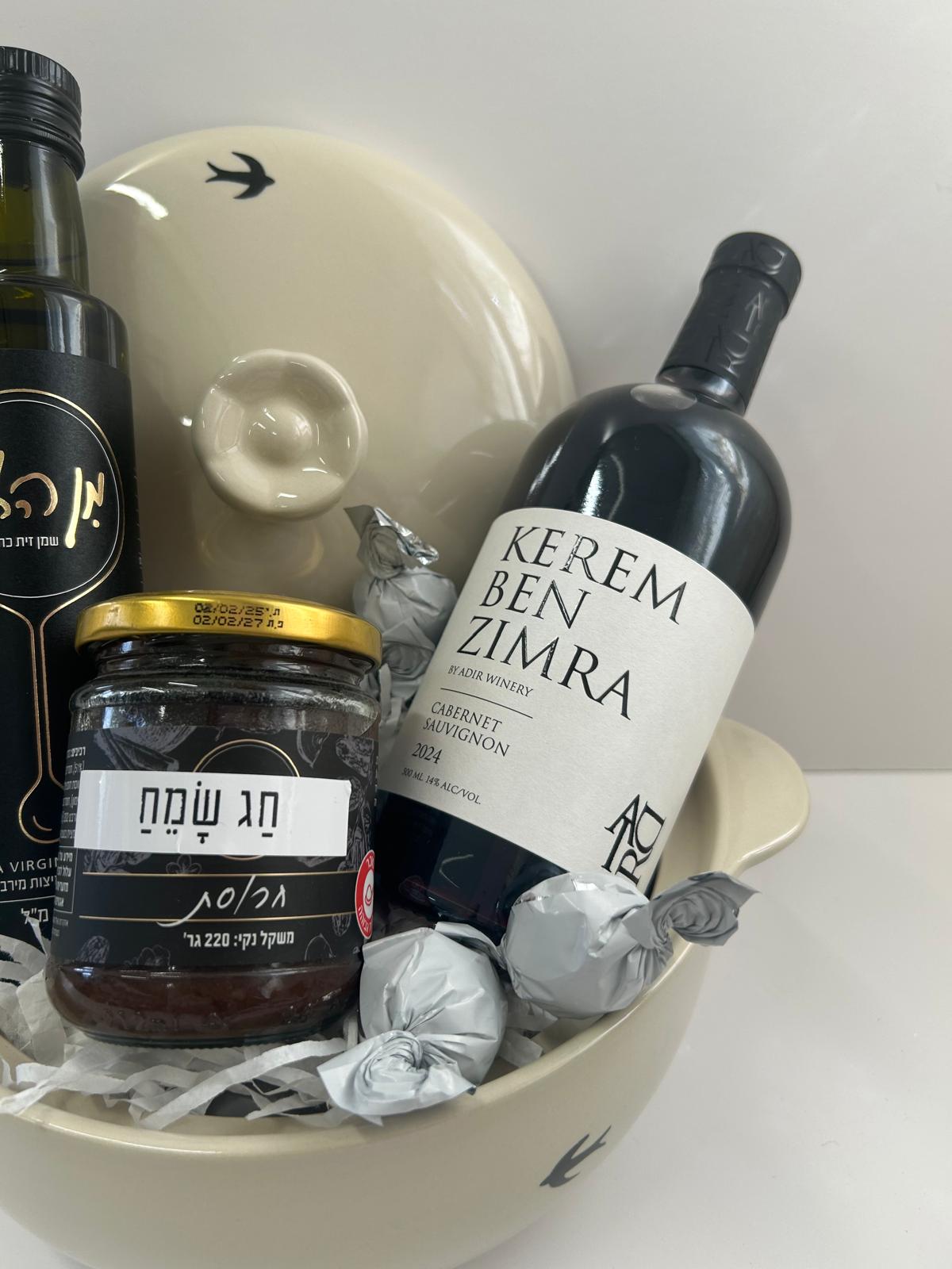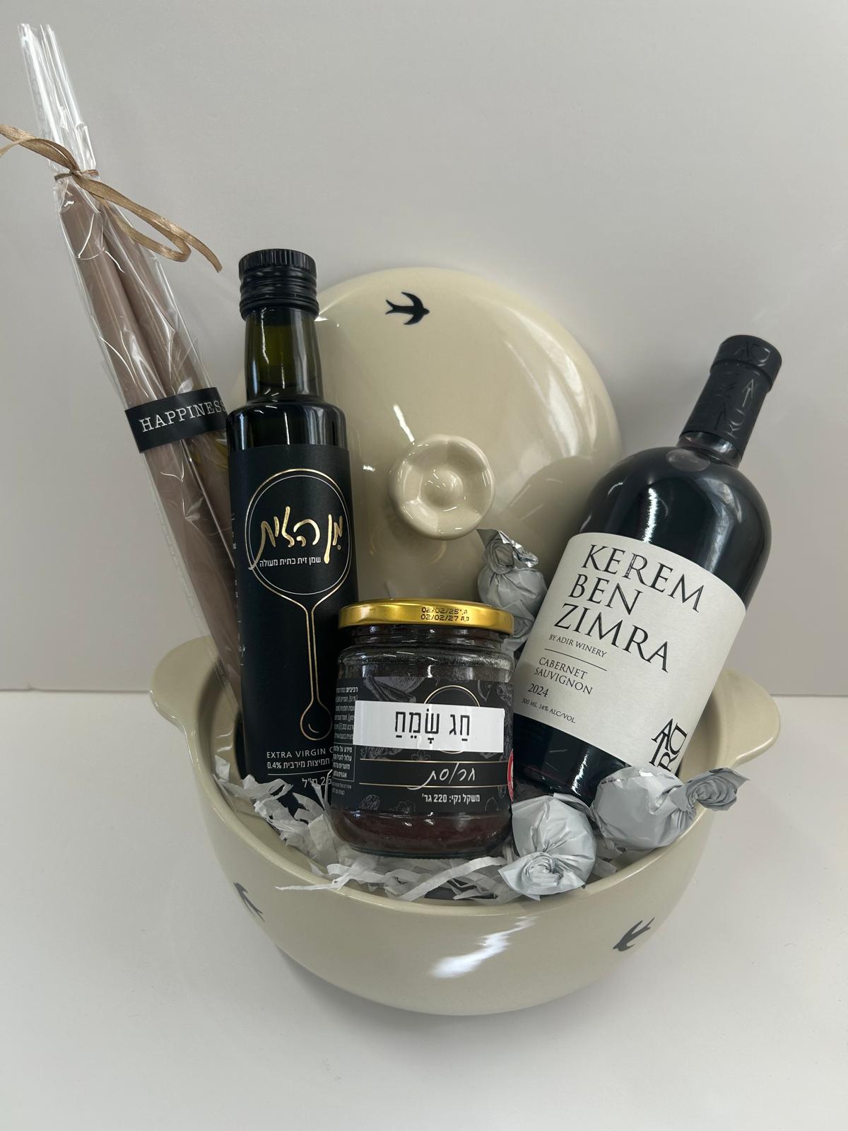שילוב של יין משובח, שמן זית איכותי, ממרח חרוסת איכותי ונרות